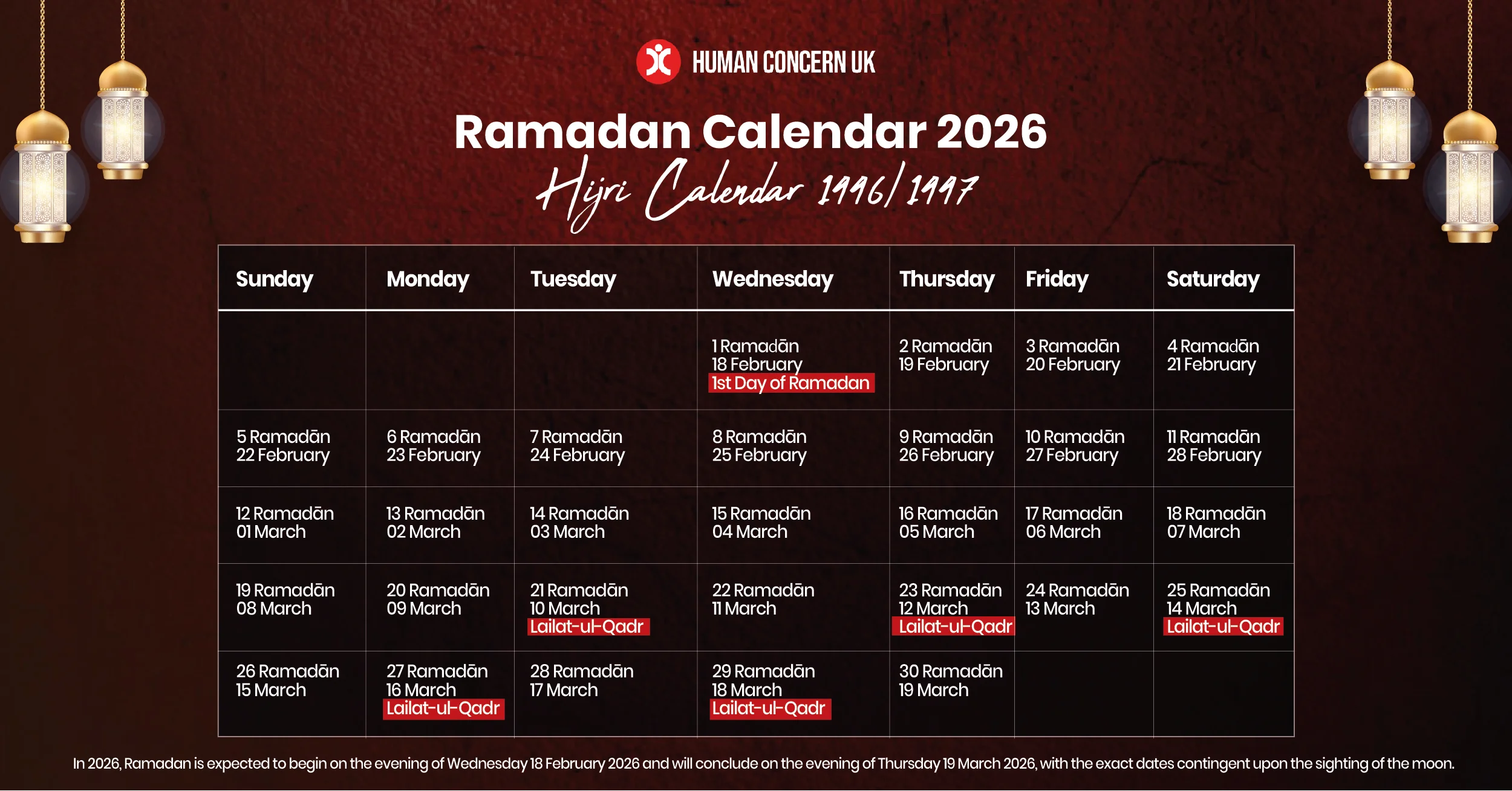 Based on astronomical calculations, the holy month of Ramadan 2026, which corresponds to the Hijri Calendar year 1447 AH, is expected to begin in the UK on or around: